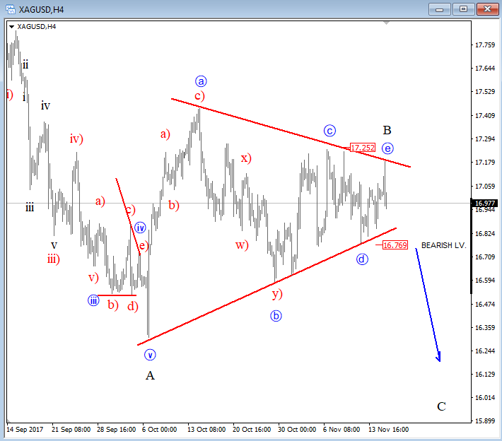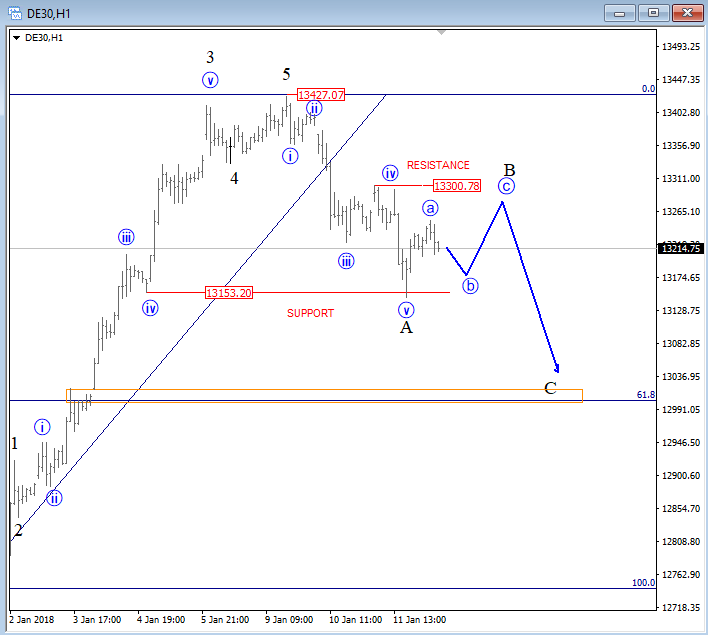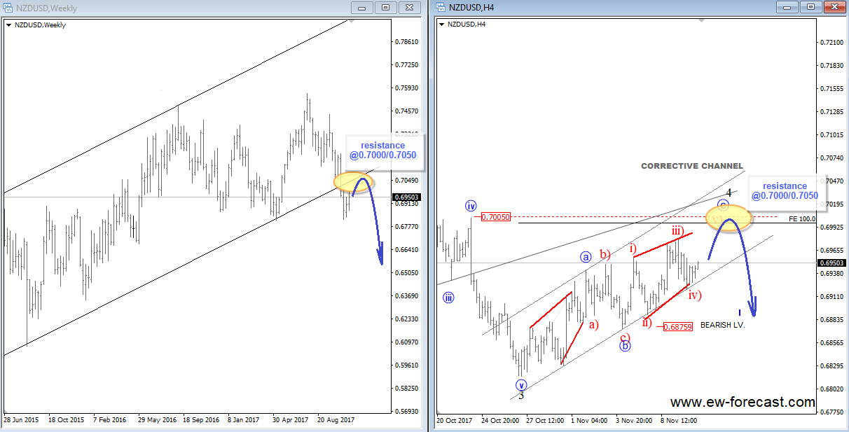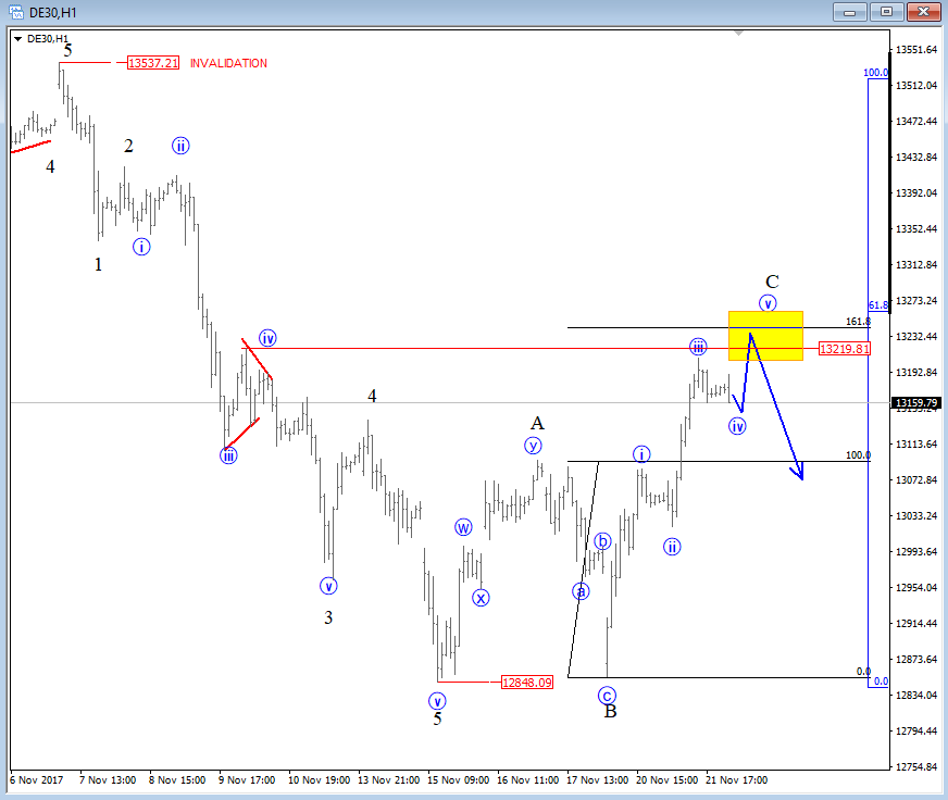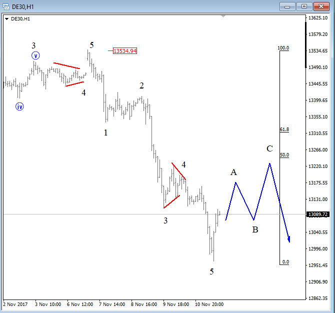 Previous Next Oct 31 2017; NZDJPY Is Out Of A Bullish Channel NZDJPY is making an important breakdown, out of an upward channel which indicates on more weakness in play, down to 75.65 while 80.94 is in place. Intraday rallies may be interesting to join the bearish ride. NZDJPY, Weekly ![]() Nov 10 2017; NZDUSD NZDUSD is trading lower since July which can be a new downtrend in progress confirmed by a broken channel on a weekly scale. Also, we see that same channel line as a resistance around important psychological level here at 0.7000/0.7050, ideally limited upside for a wave four based on 4h count. NZDUSD, Weekly and 4h ![]() Previous Next Nov 13 2017; DAX Is Turning South DAX made five waves down, which means that top has most-likely been put in place and that more weakness will follow after an A-B-C pullback. Dax, 1h ![]() Previous Next Nov 15 2017; Triangle On Silver Silver is showing a triangle formation, it's a continuation pattern that can cause a strong push down if we get a daily close price below wave d swing at 16.56. Silver, 4h ![]() Previous Next Nov 22 2017; Bearish Reversal on DAX German Dax fell sharply lower, in five waves from 12537 to 12848 and is now making a three wave recovery into nice looking 13220-13250 technical resistance. It's a pattern that can cause a strong fall in sessions ahead. German DAX, 1H ![]() Previous Next Dec 04 2017; Intraday Video- AUDJPY, NIKKEI, OIL, USDCAD Will AUDJPY continue lower if NIKKEI falls, will USDCAD bounce if OIL turns south? Previous Next Jan 10 2018; E-mini S&P500 E-mini S&P500 moved into some interesting Fib. levels here on 4h chart from where we may see a retracement into a fourth wave. Corrections are healthy and definitely waiting on it before we may play to the long side. ![]() Previous Next Jan 12 2018; DAX Can Hit 13k On Pullback After reviewing the DAX analysis based on latest price structure I think there is room for even more weakness, towards 13000, and not only 13150/60 that has been hit yesterday that I covered on twitter. GH ![]()