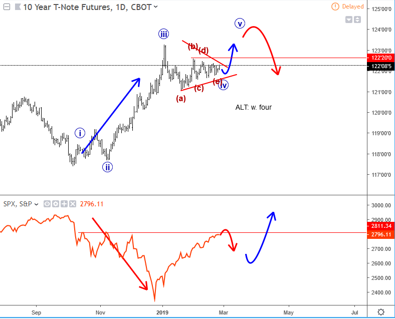Were you looking for the same? Check our services and stay on track. ![]() Previous Next Feb 26 2019; 10 year US notes vs SP500 If triangle on a 10 year US notes suggests a continuation higher, then current resistance on SP500 at 2800 may not be broken so easily..