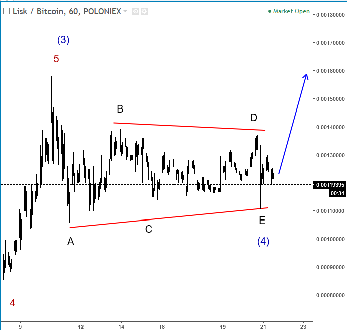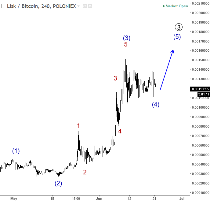 Previous Next June 21 2017; LISK Currency Looking Higher As we can see Lisk is trading bullish since March of 2017, and can be now trading within the final stages of a fourth wave correction. On the 1h chart we can see a triangle correction in the making, with recent price activity unfolding as a sub-wave E, final leg of a triangle. If that is the case, then more gain may follow on the virtual currency. A confirmation point of view for more gains would be a breach above the wave D and B swings. Lisk, 4h ![]() Lisk, 1h ![]() Previous Next July 07 2017; USDCAD Intraday Structure USDCAD is in a three wave rise ahead of todays US and Canadian data. Resistance seen at 1.3015. USDCAD, 1H ![]() Previous Next July 10 2017; USDCHF Intraday USDCHF is shows a five wave rally and three wave decline; it's clear bullish pattern that is pointing to 0.9686 again while market is above 0.9552 low. ![]() Previous Next Aug 30 2017; Nikkei 225 Remains Bullish Nikkei 225 Index is in clear uptrend with higher highs and higher swing lows, currently at the trendline support. So rather than fighting a trend, it's maybe easier to follow it for a fifth wave up. Nikkei 225, Daily