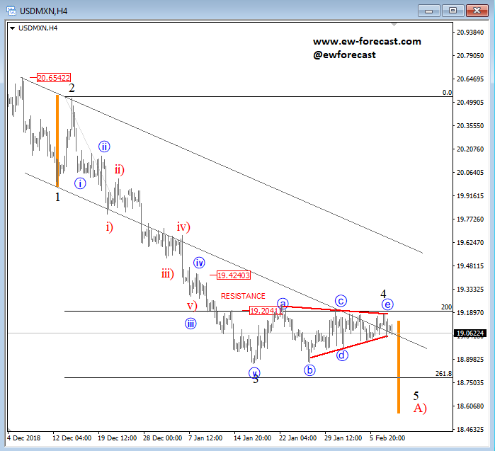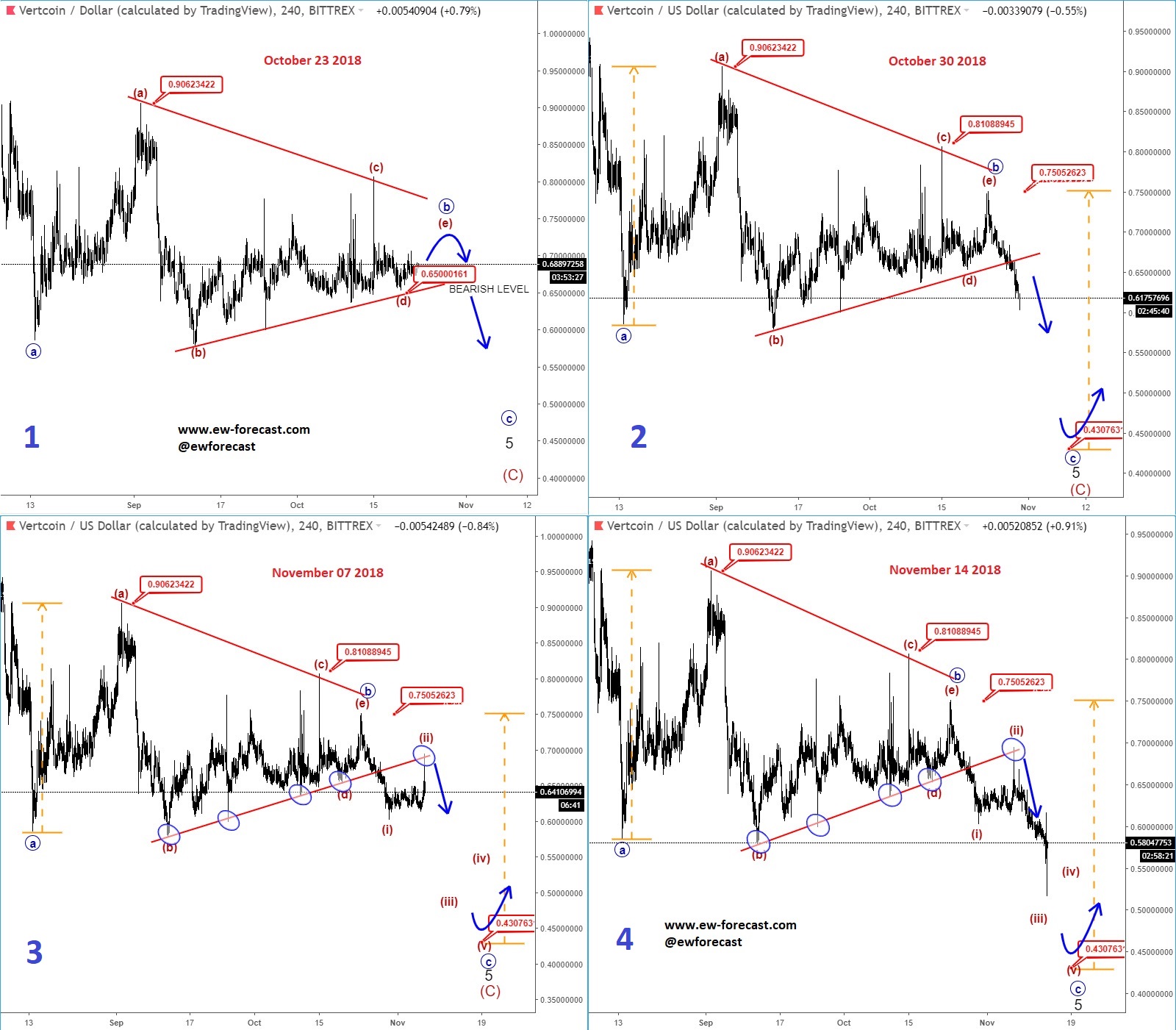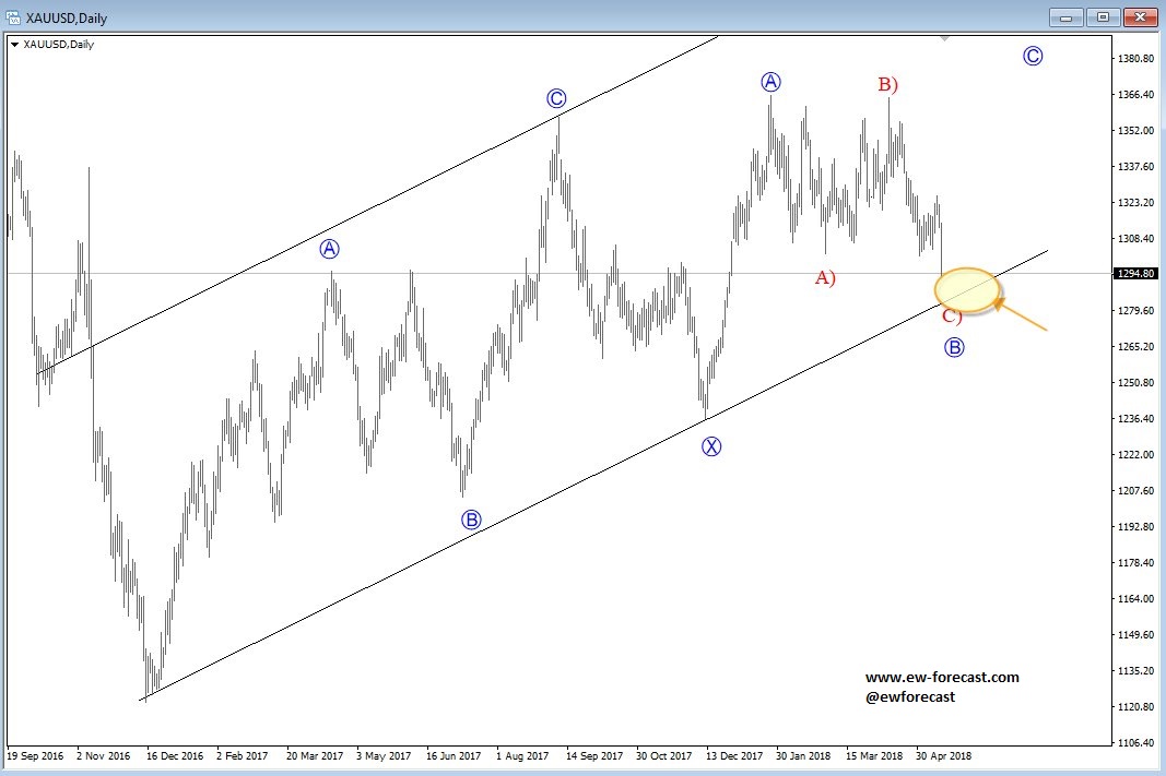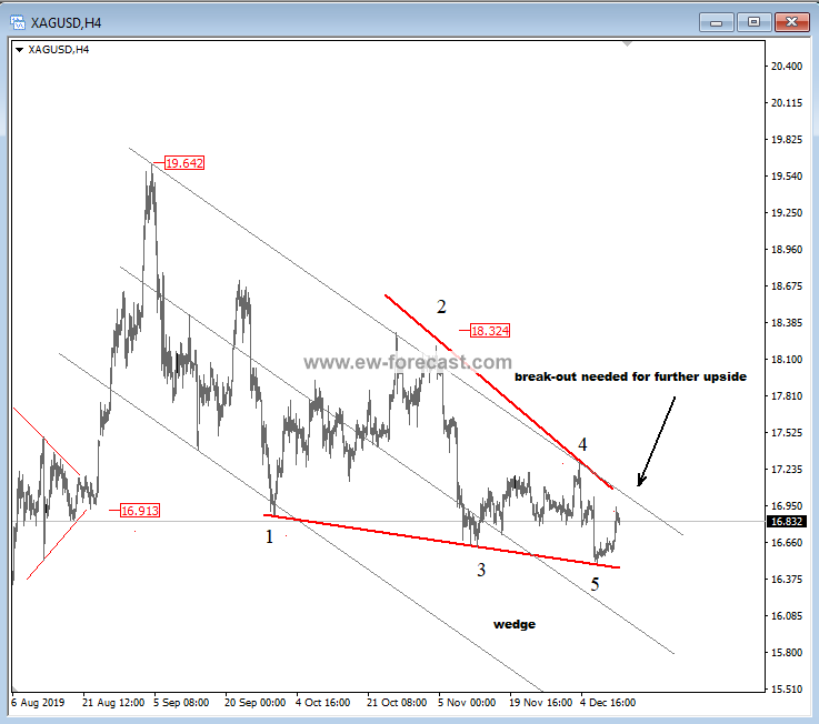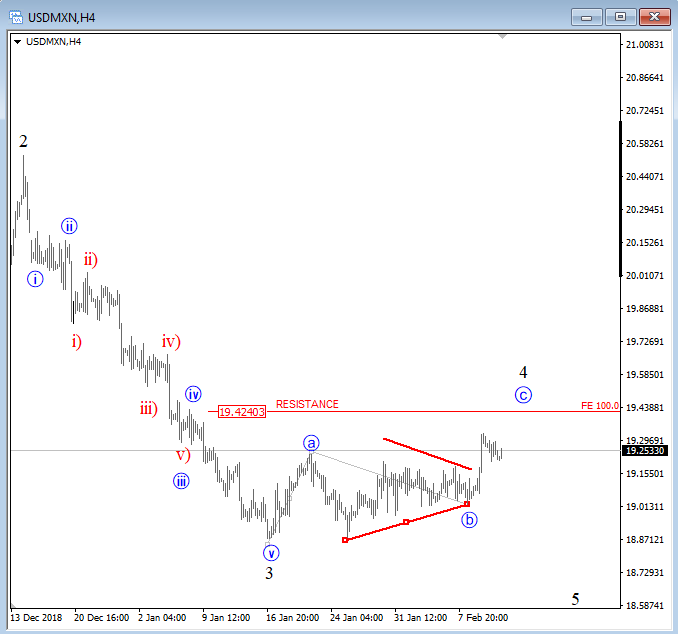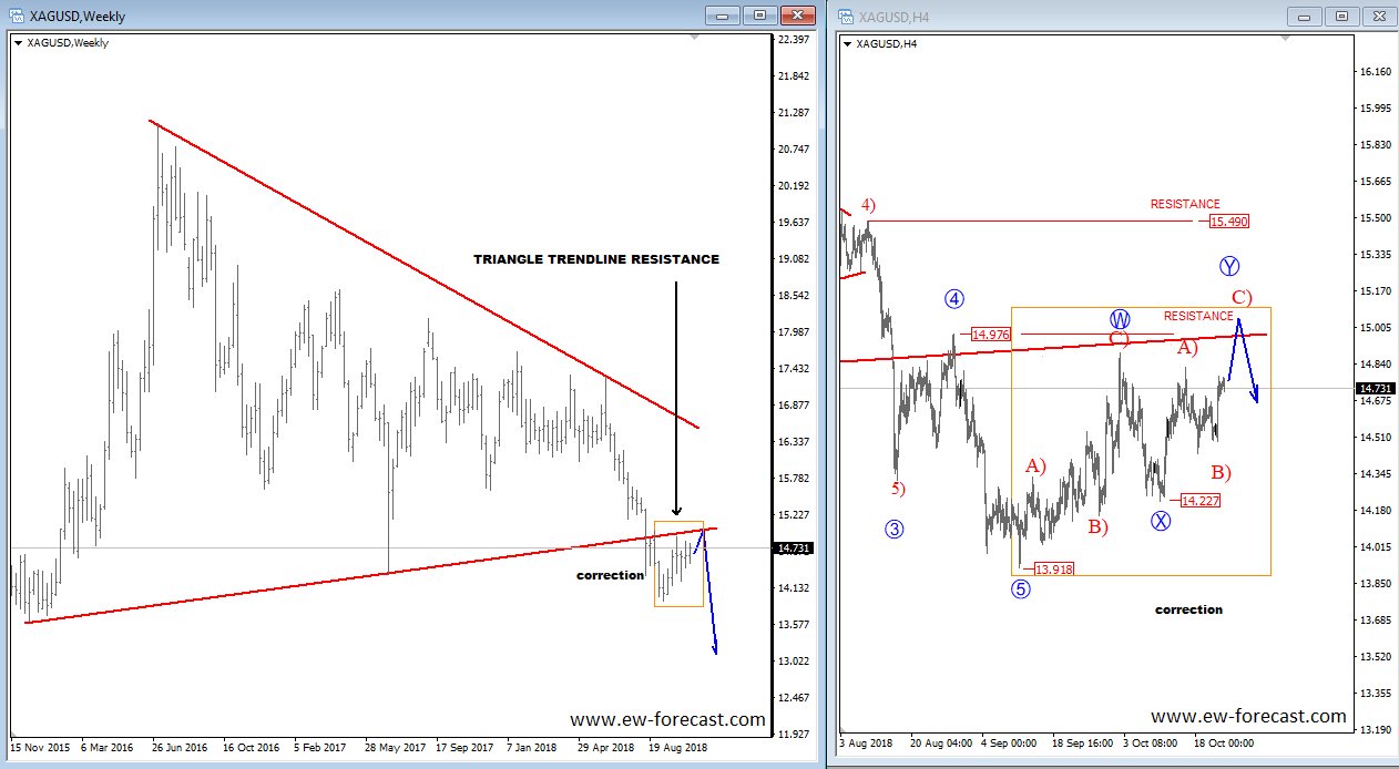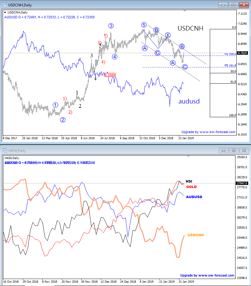GBPJPY, 4h ![]() Previous Next Sep 27 2018; Has Ripple Found A Base? A completed three-wave correction on Ripple can suggest more upside. Ripple, 2h ![]() Previous Next Oct 01 2018; Can Crude Oil Hit 80USD? H&S projected target, and daily+weekly Fib. levels show room for $80 on Crude Oil. Crude oil, Weekly + Daily chart ![]() Previous Next Oct 01 2018; BTCUSD Volatility Index We are tracking BTC Volatility Index, where we can see diagonal in progress, so we may see higher volatility soon, similar as it happened at the beginning of Septembe. S once volatility index turns up, we may see BTCUSD falling sharply once again if we consider that current recovery is on slow pace. ![]() Previous Next Oct 04 2018; Five Down On 10 Year US Notes 10 year US notes can be looking to complete five wave cycle from September highs. 10 Year US Notes, Daily ![]() Previous Next Oct 08 2018; Is USDJPY Ready To Turn Bearish? Bearish weekly candlestick formation on USDJPY and five down on 10 year US note may suggest a reversal in upcoming week. Ideally USDJPY will see lower prices while 10 year US note finds a support. 10 Year US Notes and USDJPY ![]() Previous Next Oct 12 2018; Triangle on Monero Points Lower Monero has recently completed a bigger triangle, a continuation pattern which now already points towards new lows. We expect to see a five-wave decline in the next few days or weeks. Monero, 4h ![]() Previous Next Oct 22 2018; Risk-off May Continue More weakness on stocks may cause another leg down on XXX/JPY pairs. I am closesly wathcing AUDJPY and USDJPY. GH Intra-day correlations chart Previous Next Oct 26 2018; Silver Moving Into Resistance Anyone that is bullish on silver, may want to consider the following chart. I think that bullish price action can be limited as I see price testing a triangle trendline from the outside, while recovery on intraday has personality of a correction. Important resistance levels are at 15.00 followed by 15.50. GH Silver, Weekly + 4h Previous Next Oct 29 2018; Gold Hits Important Resistance A three-wave recovery on Gold can slow down at important 1235/1250 resistance area. GOLD, Daily ![]() Previous Next Nov 05 2018; Dax Can Fall To 11200/11250 DAX can see more weakness, at least short-term towards 11200/50 after recent turn down below the wedge trendline and possible H/S pattern. Previous Next Nov 12 2018; BCHBTC Flashback As expected, we have seen a nice bearish reversal from projected resistance area (0.1000) on Bitcoin Cash (BCHBTC). More weakness in view towards new lows! BCHBTC, Daily (before chart) ![]() BCHBTC, Daily (after chart) ![]() Previous Next Nov 14 2018; FLASHBACK: Vertcoin Trading As Expected Vertcoin against the dollar is trading exactly as expected. We can see that price was still unfolding a complex consolidation on October 23, however one week later new breach and weakness was seen, which continued towards the 0.5804 level. Now the question that remains is can we expect an even further bearish continuation? Vertcoin/USD Flashback charts ![]() Previous Next Nov 15 2018; Bullish Gold and AUDUSD Gold bounced from a double trendline support which can cause more upside and potential lift Aussie to higher prices too. Gold and AUDUSD, 4h and 1h charts ![]() Previous Next Nov 21 2018; Crude Oil Ready TO Bounce? 30min chart of crude oil shows five waves of recovery, that can be an important bullish reversal that may drive prices even higher after a-b-c set-back. That five waves up also occurred from the EW channel support line shown on 4h chart. CRUDE OIL, 4h and 30min charts ![]() Previous Next Dec 12 2018; Triangle Suggests Weaker Oil Prices Crude oil is trading bearish since start of October, however stopping for a temporary triangle in wave 4. Be aware of more weakness, below 49.36 level, once this correction fully develops. Crude oil, 4h ![]() Previous Next Jan 07 2019; NZDUSD Is Recovering NZDUSD is slowly and steadily recovering from the 0.658 area; ideally a new five-wave rally is in progress, which can aim beyond the 0.697 level. NZDUSD, 4h Previous Next Jan 09 2019; EURCAD Watch Out For A Rally Euro crosses are bearish, but short-term picture suggests that some pairs may see a corrective rally. EURCAD may see an A-B-C move higher if trendline is broken. In such case new ideal resistances for a downtrend to continue is around 1.5300. EURCAD, 1h ![]() Previous Next Jan 16 2019; Bears Taking Over EURUSD EURUSD is nicely trading lower, now breaking below the 1.142 bearish level which indicates a minimum three-wave drop in play. That said, be aware of temporary corrections. EURUSD, 4h ![]() Previous Next Jan 18 2019; FLASHBACK: German DAX Trading As Expected German DAX traded perfectly out of an ending diagonal, which was located in wave 5) in December. We can now see a nice five-wave rally in motion, which can be part of a bigger, bullish cycle and can touch area near the 11300. German DAX, 4h Flashback charts ![]() Previous Next Feb 04 2019; AUDUSD vs USDCNH Is USDCNH completing a corrective setback? Well, if US dollar will rise above 6.85 against CNH, then be aware of limited upside on GOLD and AUDUSD this month. ![]() Previous Next Feb 08 2019; USDMXN Suggests A New Leg Down Feb 13 2019-update USDMXN is higher so triangle that we were tracking was placed in wave b rather than four. But its still a corrective bounce, so resistance may not be far away for this a-b-c move. Reversal can be coming for a fifth wave down; ideally from around 19.42. ![]() Feb 08 2019 USDMXN has some interesting development; showing triangle in fourth wave so be aware of a new push lower. USDMXN, 4h ![]() Previous Next Feb 18 2019; Lumen Can Be Finishing A Big Correction Within Uptrend Lumen (XLMUSD) may have a completed big three-wave (A)-(B)-(C) corrective decline in 2018, which is clearly visible in the logarithmic scale chart, especially since we have noticed a strong resistance from 2017 that can act as a strong support in 2019! That said, be aware of a bullish reversal,