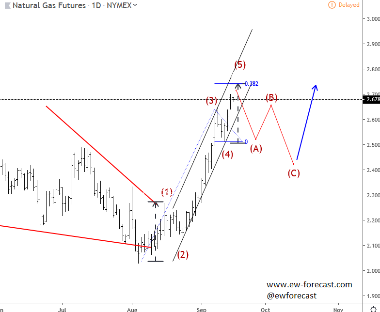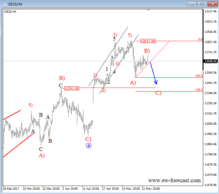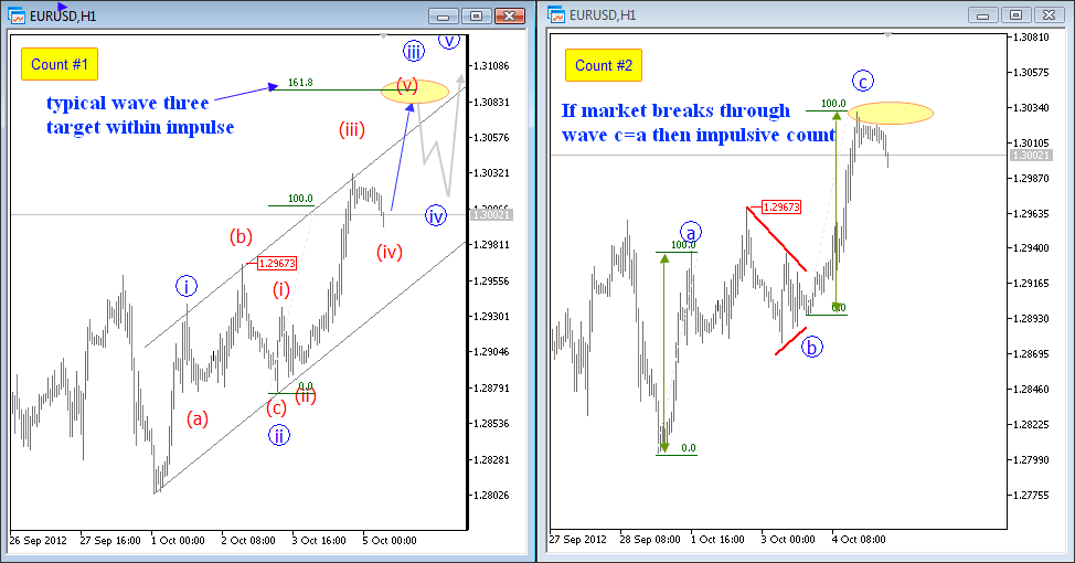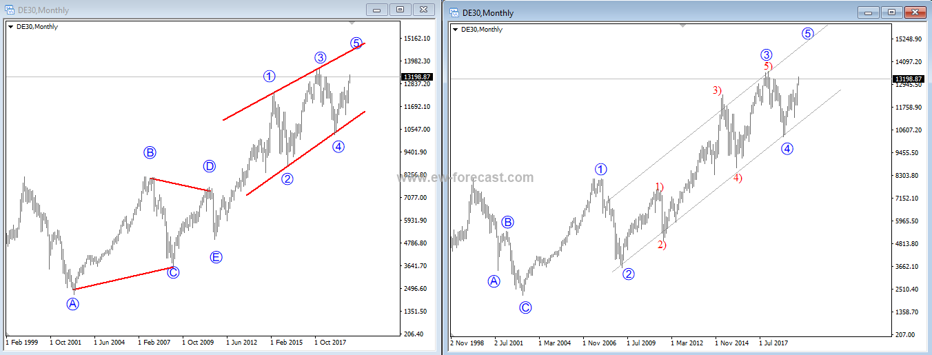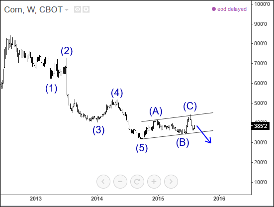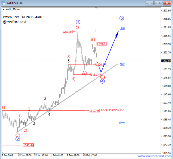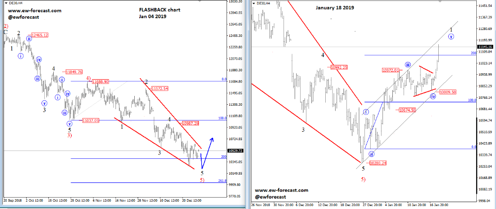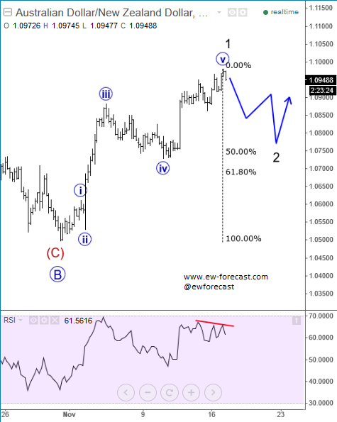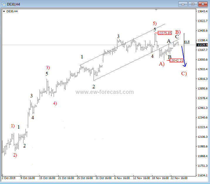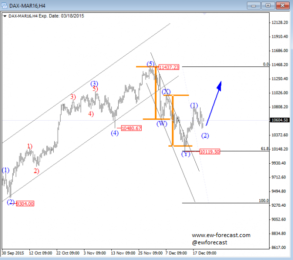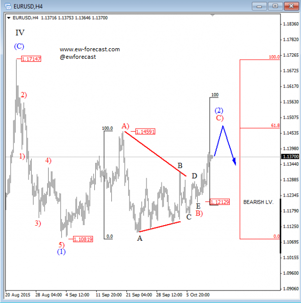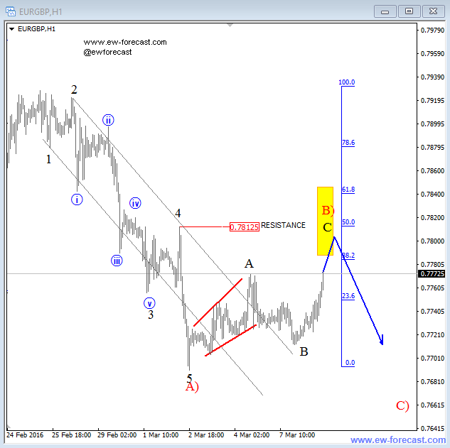 Previous Next Sep 28 2015; Sugar Moving As Predicted New highs on Sugar are already here as expected from last week. Try our service today for 1 Month For Only 1€!! Sugar, 1h ![]() Previous Next Sep 28 2015; German Dax Intraday Price can be looking for some support around 9500. Try our service today for 1 Month For Only 1€!! German Dax, 15 min ![]() Previous Next Sep 30 2015; GBPCAD : Pair May Go Lower Pair is now trading in a three wave pull-back which consist out of three waves (a), (b) and (c). Wave (c) may reach lower levels before turning up. Try our service today for 1 Month For Only 1€!! GBPCAD, Daily ![]() Previous Next Oct 05 2015; EURCAD: Price Is Looking Bearish Price may still go higher in blue wave c, before turning down into black wave (iii). EURCAD, 15 min ![]() Previous Next Oct 05 2015; NFP and S&P500- Technicals Won Again Were you bullish or bearish on US stocks after bad NFP report on Friday. Well pattern was clearly bullish! A flashback chart: ![]() Previous Next Oct 07 2015; NZDUSD : Bullish Impulse In Play NZDUSD, 2H ![]() Previous Next Oct 08 2015; S&P500 Intraday Bullish Structure Triangle on the S&P500 is pointing up to 2010-2020 zone. S&P500, 1h ![]() Previous Next Oct 12 2015; EURUSD : Recovery On EUR Is Looking Corrective EURUSD, 4H ![]() VIDEO Oct 14 2015 Previous Next Oct 13 2015, Good Old Positive Correlation It's very interesting to see GOLD, AUDUSD and S&P500 up at the same time. ![]() Previous Next Oct 15 2015, Sugar Is Still Looking Up Sugar has a nice looking structure and could reach higher levels after the recent pull back in red wave 4). Sugar, 4h and 1h ![]() Previous Next Oct 26 2015; EURUSD Is Moving Down More Weakness is expected in days ahead, after temporary pull back in wave 4. EURUSD, 4H ![]() Previous Next Oct 27 2015; CORN : Bearish Momentum CORN, Daily ![]() CORN, 4H ![]() Previous Next Oct 28 2015; AUDUSD : Intraday Weakness Intraday downtrend has room for 0.7070-0.7100. AUDUSD, 30 min Previous Next Oct 30 2015; S&P500 : Upside Can Be Limited There is room for 2100 but think that sooner or later new reversal down will occur. S&P500, 4H ![]() Previous Next Nov 02 2015; USDCAD : Bulls In Play On the USDCAD chart, uptrend may continue this week as decline frome 1.3280 is already in three waves. USDCAD, 4H ![]() Previous Next Nov 04 2015; Wheat Is Expected To Go Lower Wheat has still some room for weakness to complete black wave 5. Wheat, Weekly Previous Next Nov 10 2015; GBPUSD : Lower Levels In View Market is expected to continue lower from current levels towards 1.5000 psychological level. GBPUSD, 4H ![]() Previous Next Nov 12 2015; CORN Now and Then CORN, 4H ![]() Previous Next Nov 17 2015; AUDNZD : Pullback In Sight Price made a five wave sequence to the upside in black wave 1, thus meaning there could be a three wave correction in play in session ahead. AUDNZD, 4H ![]() Previous Next Nov 25 2015; Bearish Triangle On Gold New lows on Gold can occur soon. GOLD, 4H Previous Next Dec 01 2015; USDTRY : Flashback Chart Previous Next Dec 07 2015; USDJPY : Triangle Pointing Up Triangle is pointing to a new high. USDJPY, 4H ![]() Previous Next Dec 15 2015; GBPAUD Is Turning Bearish GBPAUD, 30 Min Previous Next Dec 18 2015; USDCAD At 1.4 Psycho Level Minor Intraday pullback on USDCAD from the highs can be corrective. Will pair hit 1.40!? USDCAD, 1H ![]() Previous Next Dec 22 2015; DAX : More Upside In View More gains could follow into the year end as we see wave (2) near completion. German DAX, 4H ![]() Previous Next Jan 04 2016; EURAUD Is Looking Up EURAUD can be turning bullish, based on the Elliott wave pattern, especially if daily candlestick remains strong by the end of the day. EURAUD, 4H ![]() Previous Next Jan 20 2016; GBPAUD : More Upside In View More upside could be seen in sessions ahead, as price looks to have completed the correction in black wave B. For more analysis like this, register HERE GBPAUD, 4H ![]() Previous Next Jan 28 2016; S&P500 : Bears Still In Play S&P500 looks to be trading in a correction in wave 4. This correction can be limited near the lower channel line and the 38.2 fibo. ration, where a reversal may occur. If you like our analysis please vote for us "Best Analysis", Answer "Elliott Wave Corner" by EW-Forecast Vote Here: http://goo.gl/mnpZfY For more analysis like this, register HERE S&P500, 4H ![]() Previous Next Feb 22 2016; Corrective Decline On GOLD Gold is trading nicely to the upside, displaying a nice impulsive structure from the low of blue wave 2-circled. Currently metal in a correction in wave 4 and could still decline towards the trendline support, before making a reversal to higher levels in wave 5. For more analysis like this, register HERE GOLD, 4H Previous Next Mar 08 2016; EURGBP Approaching Resistance Intraday correction on EURGBP is slowly approaching resistance at 0.78125, where a change in trend may happen towards lower levels in wave C). For more analysis like this, register HERE EURGBP, 1H ![]() Previous Next Mar 11 2016; EURUSD Displaying H&S EURUSD may not be so bullish as it looks right now. Potential reversal points near 1.1200 had been reached. We are waiting on weakness back towards 1.1000 to confirm lower prices ahead. For more analysis like this, register HERE EURUSD, Daily ![]() Previous Next Mar 24 2016; GBPUSD Turning Bearish GBPUSD keeps trading bearish, breaking beneath the lower channel line and suggesting that more weakness could be in store after a minor correction in wave 2. For more analysis like this, you can register HERE GBPUSD, 4H ![]() Previous Next Apr 12 2016; Gap Reversals On DAX Notice that in the last few examples, DAX has always changed a direction after an open gap was filled. So the question is; Will DAX make a new leg down to around 9430/70? ![]() DAX, 1H ![]() Previous Next May 20 2016; Triangle On DAX German DAX can stay under pressure, as we see triangle unfolding. ![]() German DAX, 1H ![]() Previous Next May 31 2016; CADJPY Ideally Reaching Lower C