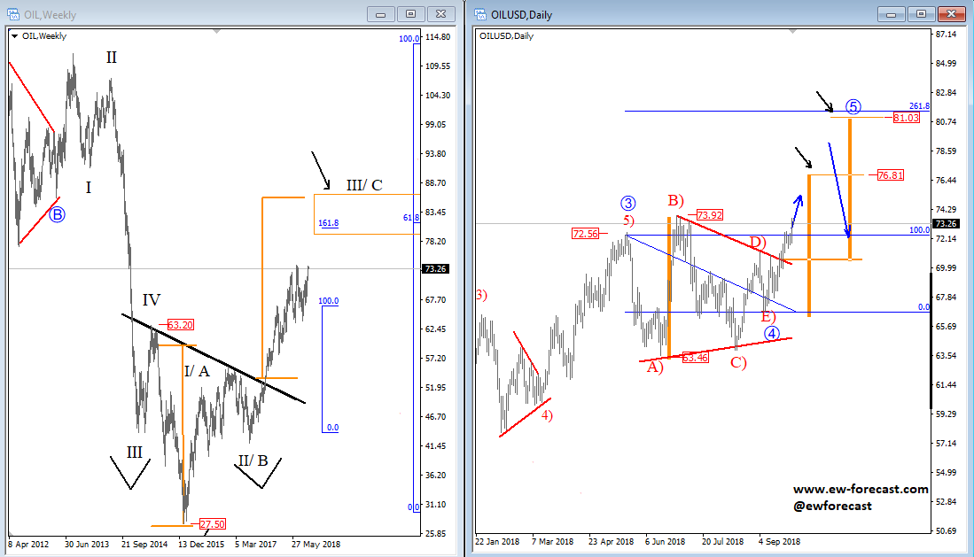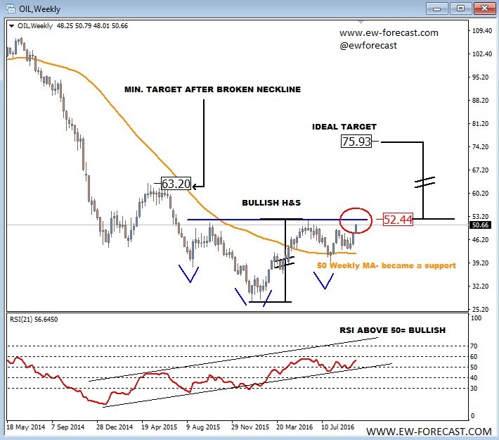 Previous Next Sep 06 2016; Intraday Bullish Dax Intraday structure on German Dax suggests that index may see more upside in the next few sessions as recent pullback to 10660 appears corrective. Can we see 10800 this week? ![]() Previous Next Oct 10 2016; Bullish H&S On Crude Oil Decisive break above 52.50 can open door for 63.20 and then even 76.00. Crude Oil, Weekly ![]() Previous Next Oct 14 2016; Breakdown On Copper Can Limit Aussie Gains I'm expecting drop on Aussie by the year end, but guess will have to wait on breakdown on copper first to pull AUD/USD lower.