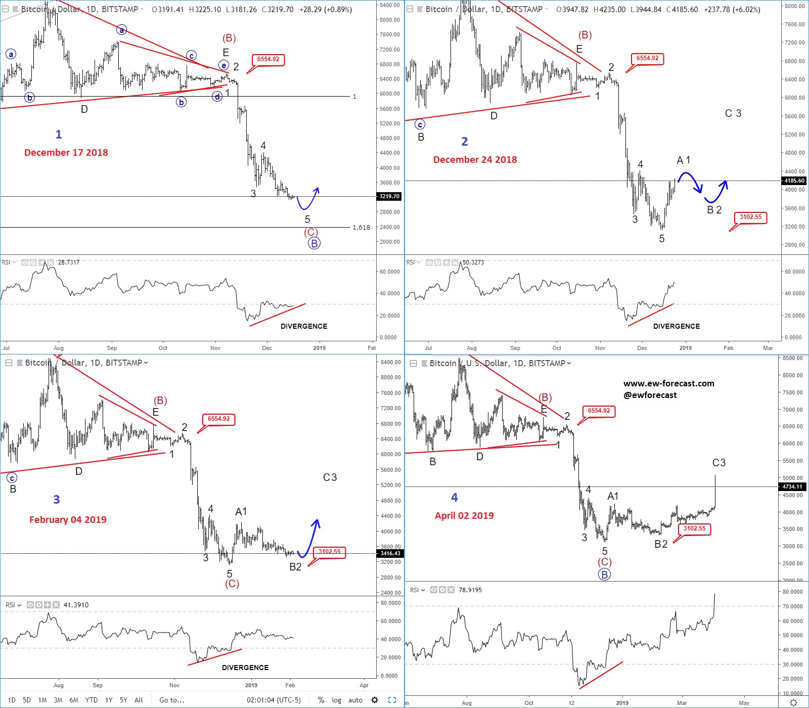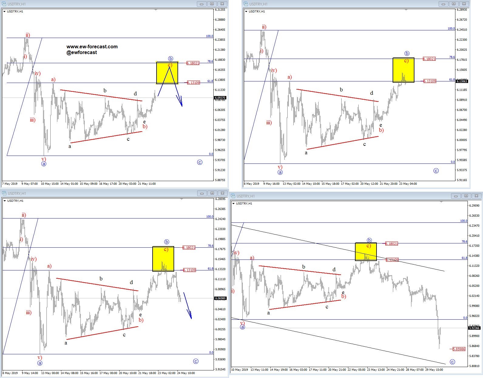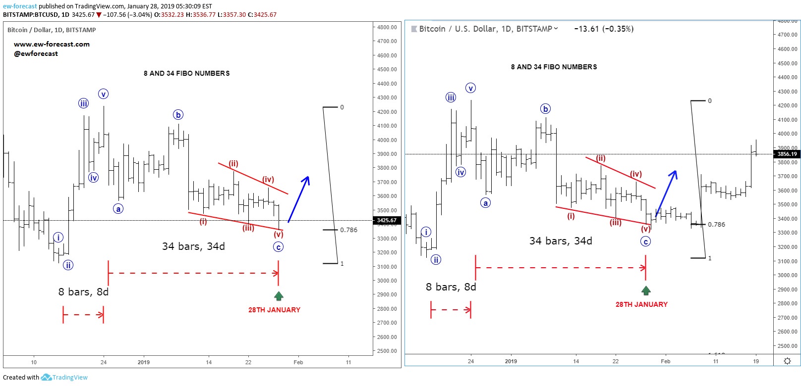 ![]() Previous Next June 03 2019; NEW PAIR - USDTRY Hi traders! Below you can see how USDTRY played out in the last week or two. USDTRY, FLASHBACK Chart (1h) Click on the image to expand it. ![]() NEW!! Finally, after a lot of requests the $USDTRY is included in our list of instrument for members. Register at www.ew-forecast.com/register Previous Next June 11 2019; Three Legs On S&P500 Point Higher As you know after a five-wave movement, three contra-trend waves will follow, and after they are completed the direction of the bigger trend may resume. So, is the SP500 headed back to all-time highs? S&P500, Daily ![]() NEW!! Finally, after a lot of requests the $USDTRY is included in our list of instrument for members. Register at www.ew-forecast.com/register Previous Next June 13 2019; BTCUSD Futures Flashback Hi traders! Bitcoin futures is trading as expected since end of May, when we were expecting to find a temporary top and resistance for a wave 3. As we know prices dropped nicely since then, and can now be trading in a middle of a bigger correction. We see wave 4 in progress, with possible support around 7000/6000 region. Bitcoin Futures, 4h flashback charts ![]() NEW!! Finally, after a lot of requests the $USDTRY is included in our list of instrument for members. Register at www.ew-forecast.com/register Previous Next July 12 2019; USDCNH Down, Aussie Up? Hi traders! PBoC says they will reduce real rates for small firms and all other steps to keep the yuan stable. Well, we see five waves down here on USDCNH so more weakness can come after an A-B-C bounce which at the same time can mean strong AUD. USDCNH vs AUDUSD, 4h ![]() Previous Next July 16 2019; Gold Looking Higher Strong uptrend on gold suggests more upside, out of current wave IV consolidation. GOLD, Daily ![]() Previous Next July 23 2019; GBPNZD Sell The Rally Pound was one of the weakest currencies in the last few months, so if you are considering to join this trend then consider to wait a pullback. Nice resistance on GBPNZD is at 1.8700, it it gets there. GBPNZD, 4h ![]() Previous Next August 19 2019; Bearish GBPUSD Stopping For A Pause On GBPUSD we see a bearish impulse in the making, that may see more weakness after a 290-350 pip rally to complete the fourth wave. GBPUSD, Daily ![]() Previous Next August 23 2019; Bullish Triangles On Crypto We have noticed some bullish triangles in the Crypto market.. Is this a signal for a bigger recovery?! THETAUSD, 4h ![]() MATICUSD, 4h ![]() Previous Next Sep 17 2019; Natural Gas Can Be Bottoming Natural gas is bottoming after that very nice and strong turn up from the lows. It is a clear five wave move that will suggest more upside after a three wave set-back. Natural Gas, daily ![]() Previous Next Sep 20 2019; EURGBP Breaks Key Support! – Elliott wave New Brexit hopes causes a break below 0.8894 important swing support; key level for further weakness into a bigger wave C. EURGBP, weekly + daily ![]() Previous Next Sep 22 2019; Cable Can Climb Higher Within A Corrective Recovery GBPUSD can climb higher after the initial, minor, five legs within wave A), which suggest that the cycle since 1.338 is completed, and a move in minimum three legs is underway. GBPUSD, Daily ![]() Previous Next Sep 27 2019; GOLD Turning From Resistance GOLD is dropping after an A-B-C corrective move, which seems to have found resistance and a bearish turn near the 1535 area. Current weakness is a suggestion of an upcoming five-wave cycle. GOLD, Daily ![]() Previous Next Oct 15 2019; 10 Year US Notes Turning Down 10 year US notes are turning down after a completed three wave rise in B, so more weakness is likely coming which is bullish for the USDJPY. 10 Year US Notes vs USDJPY, 4h Previous Next Oct 22 2019; EURUSD- Intraday Correction Within Uptrend EURUSD is in a pullback mode, now seen in wave four which may reach the area of a former wave four around 1.1114 level, near 38.2% from where bulls may see another push up. Previous Next Nov 07 2019; Bears Can Break 19.00 Level Minor correction from 19.01 low on USDMXN suggests further weakness targeting below 19.00. USDMXN, 4h ![]() Previous Next Nov 12 2019; DAX: Final Leg Of A Monthly Cycle Different monthly counts on the german stock index suggest that final leg higher is here, so 2020/2021 may not be so optimistic. German DAX, Monthly ![]() Previous Next Nov 21 2019; Correction on Crude Oil Points Lower Corrective recovery in seven swings on Crude oil suggests limited upside and a bearish turn. Crude oil, 4h ![]() Previous Next Nov 26 2019; Correction On DAX Can Be Deeper Drop out of a channel can cause more damage on DAX. DAX, 4h ![]() Previous Next Dec 02 2019; AUDJPY: Corrective Recovery At Resistance AUDJPY is now at potential resistance/bearish reversal zone here at 74.53/74.89 region; be aware of a turn lower. AUDJPY, 4h ![]() Previous Next Dec 11 2019; December Can Be Important Month For BTC Can month of December once again cause an important swing for the Bitcoin? ![]() Previous Next Dec 12 2019; Wedge on Silver Ending - Elliott wave Wedge can be ending on silver, ideally around 16.40 region. However we still want to see a break above the upper channel line to confirm further upside activity. Silver, 4h ![]() Previous Dec 19 2019; Bearish Developments On USDMXN USDMXN is in a bearish impulse, down from 19.658 area; currently we are tracking a minor correction as wave 4) within the downtrend. Possible resistance is near the 19.09/19.25 zone. USDMXN, 4h ![]() |