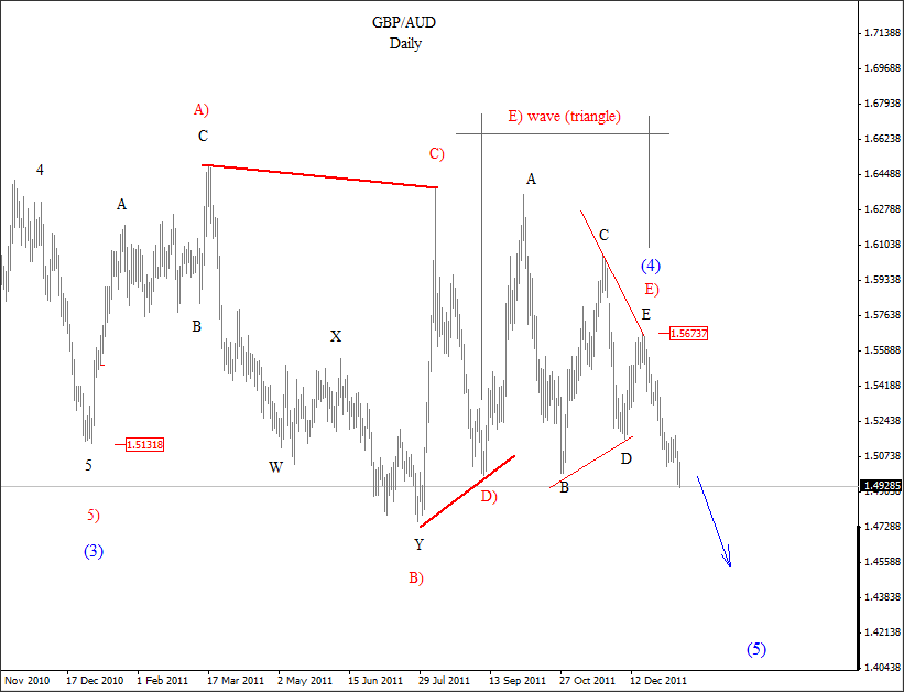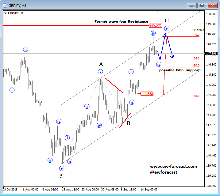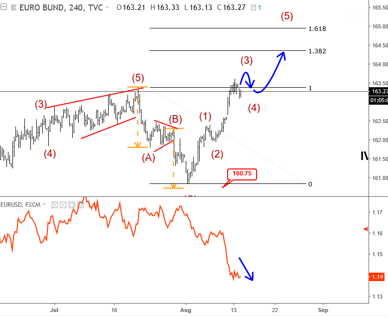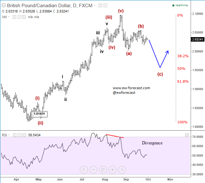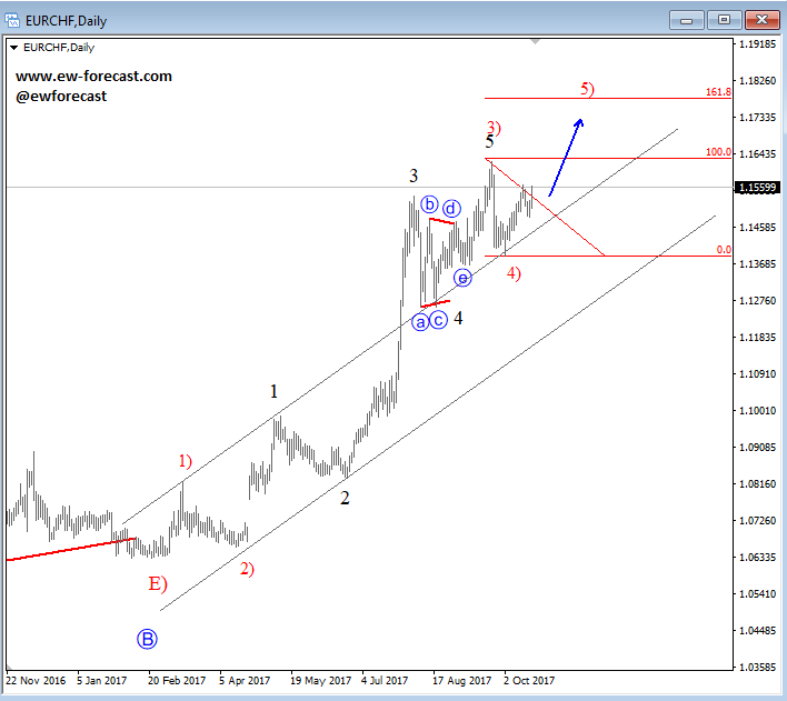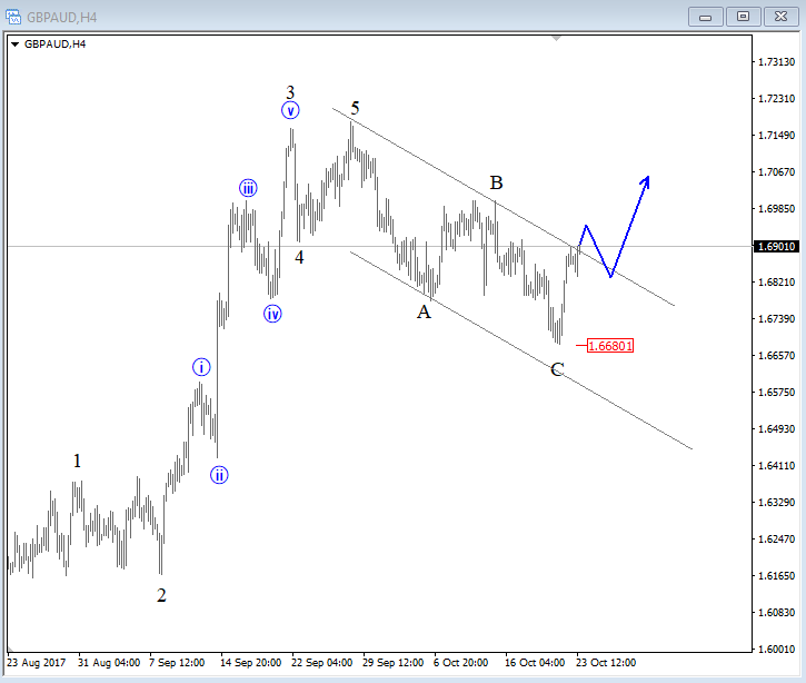 USDNOK made only three waves up from September low, seen as a corrective wave 4) so we expect downtrend to resume, especially once channel support line is broken. ![]() Oct 17 2017; EURCHF Trading Bullish EURCHF is trading bullish since February of 2017; now looking again up from red wave 4) into wave 5). EURCHF, Daily ![]() Oct 23 2017; GBPAUD Remains Bullish Five waves up and three waves down is a clear bullish pattern that is visible on GBPAUD, so price can gain back to 1.7180 in days ahead. GBPAUD, 4h