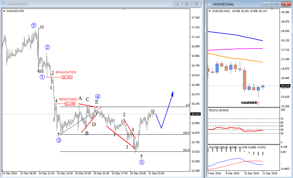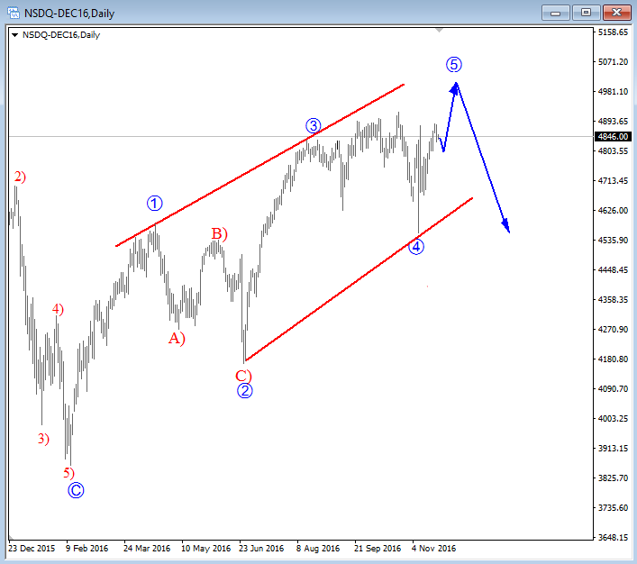 Previous Next Nov 24 2016; NASDAQ Could See Limited Upside Despite recent strong turn up on stocks since the US elections, we see some patterns that suggests limited gains in months ahead. It can be an ending diagonal here on NASDAQ100; a strong reversal pattern that can put market in bearish mode in 2017. NASDAQ, Daily ![]() Previous Next Dec 20 2016; USDJPY Can Hit 120.00 The S&P500 could help the USDJPY to hit 120.00. S&P500(4h) and USDJPY(Weekly) ![]() Previous Next Dec 21 2016; Silver Short-term Elliott wave structure and hammer candlestick on daily chart suggest that metal can see higher prices in the near-term. ![]() Previous Next January 03 2017; USDCAD My favorite pair for start of 2017, based on Elliott Wave structure, is USDCAD. We have clear five waves down while bounce is already looking corrective to the upside, so we can assume that next major move will be lower. Previous Next Jan 12 2017; Zig-Zag On DX