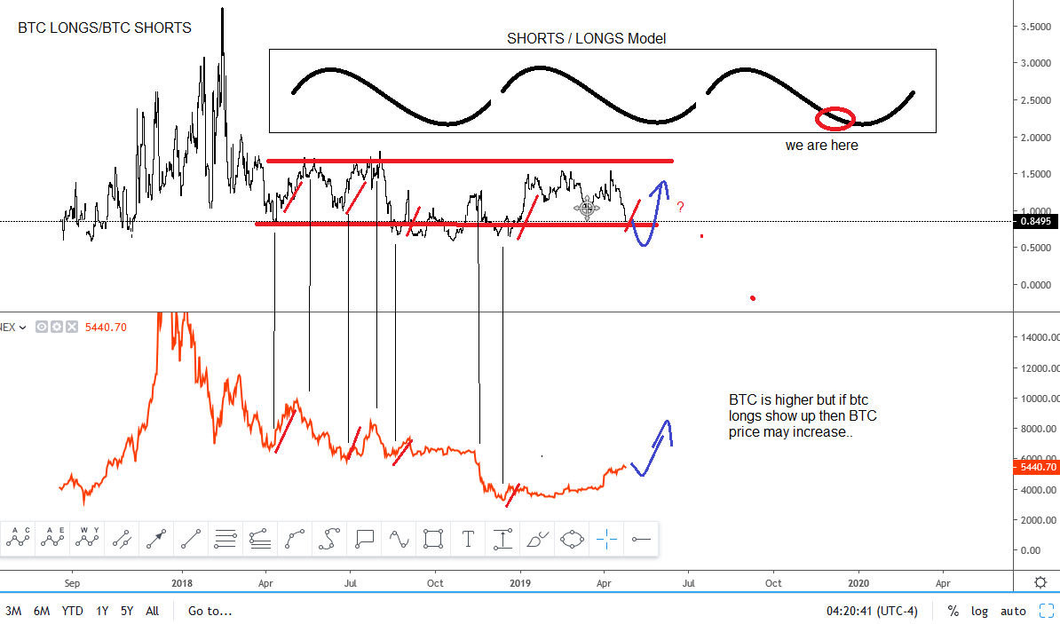 BTCUSD is trading as expected since December of last year. We see a bottom at the 3102 level, which is now being followed by a temporary, three-wave reversal. BTCUSD Flashback charts, Daily ![]() Previous Next April 27 2019; BTC Long/Short Ratio Hi traders,