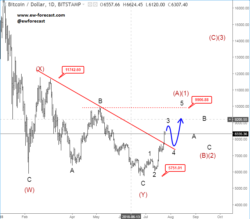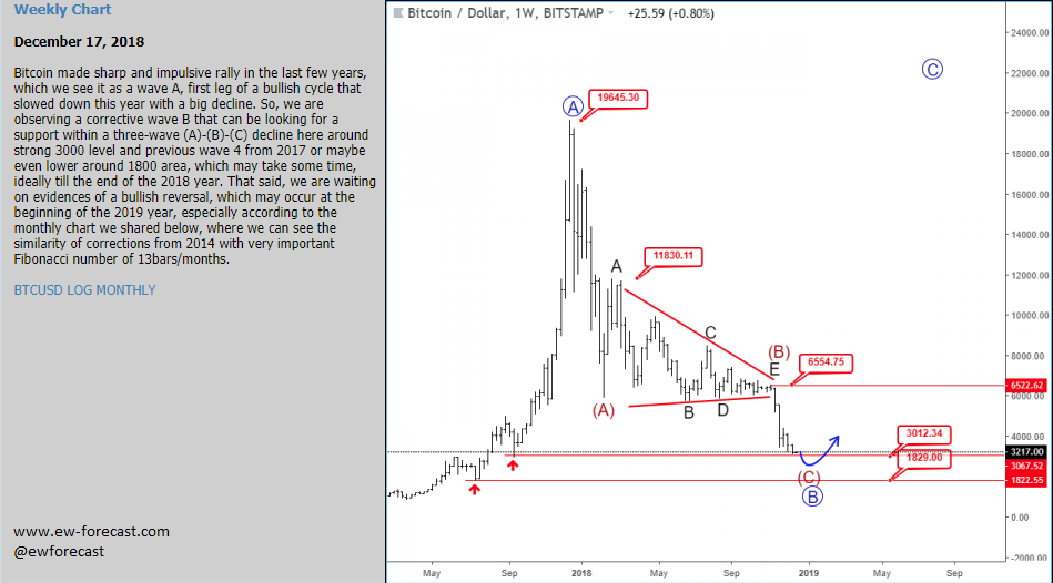 Previous Next July 16 2018; BTCUSD Will Jan-Aug Correction Repeat? BTCUSD, Daily Log ![]() Previous Next July 25 2018; BTCUSD Recovering from the Lows Bitcoin can be unfolding five waves up away from 5751 lows, which would suggest a temporary bullish reversal. BTCUSD, Daily ![]() Previous Next July 31 2018; Correction on S&P500 Points Lower Five wave decline on s&p500 points into a three-wave temporary correction, that can look for a bearish reversal around the 2820-2830 area. More weakness in view. S&P500, 1h ![]() Previous Next Aug 02 2018; ETHUSD Flashback Chart From a correction to an impulse on ETHUSD, since July to August. If everything goes as expected 360/335 area can be reached. ETHUSD Flashback chart ![]() Previous Next Aug 14 2018; Bullish Bunds Bearish For Euro German bund remains in uptrend; making a five wave move higher which suggests more euro weakness. ![]() Previous Next Aug 17 2018; AUDUSD Fell Out Of Triangle At the end of the volatile week like this is good thing to make a step back and go through level and formation on higher time frames. Here is AUDUSD. Played on the short side recently, but glad to be out now. GH ![]() Previous Next Aug 31 2018; BTCUSD Video Analysis Crypto currencies are still in downtrend; but if ending diagonal will prove to be correct on BTCUSD, then this market can still be very interesting later this year GH