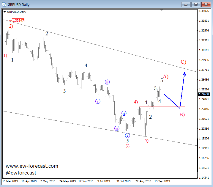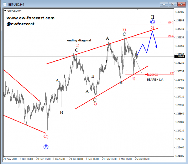 EURAUD, 1h ![]() Previous Next March 26 2019; GBPUSD Looking For A Top? Cable is on the rise, but move is slow and overlapping. I think it can be an ending diagonal, so be aware of a top at 1.34-1.35 area.