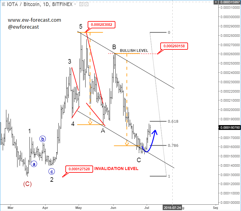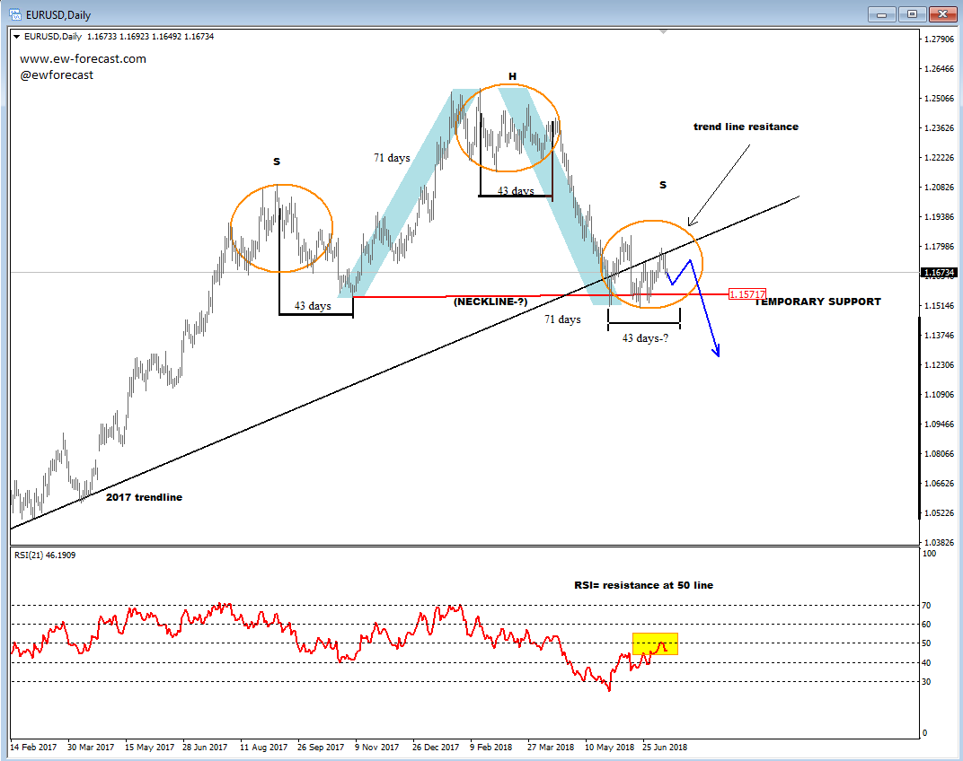 Previous Next July 04 2018; IOTBTC at Support Three waves down on IOTA suggest more upside; also price is at support and interesting Fibonacci ratio from where prices are already turning higher. Break above 0.00026 would confirm more gains. IOTBTC, Daily ![]() NEW!! Digital Currency service An advanced technical market analysis on BTCUSD, ETHUSD, LTCUSD, BCHUSD, XRPUSD plus some ALT coins Limited Offer: Two Months For Price Of One!! Previous Next July 12 2018; EURUSD HS And Cycle Analysis H&S pattern and cycle analysis suggest a break below 1.1500 till end of the month.