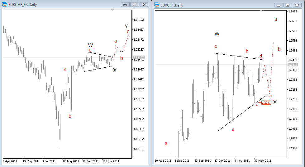 Next Aug 10 2011 Gold Looking Bullish Gold eyeing Fibo levels around 1800, while above 1720! Previous Next Aug 11 2011, 03:15EDT Gold Update Gold moved above $1800 per ounce! ![]() Previous Next Aug 29 2011, 03:15EDT Eur/Chf Before and After Nice clean break higher on Eur/Chf after we recognized a triangle, which is a continuation pattern. Here is what we noted at that time, just before price exploded higher: