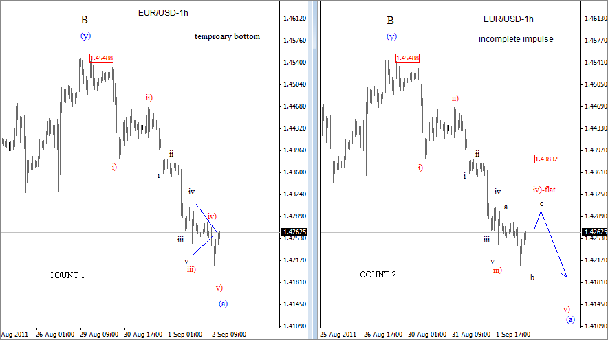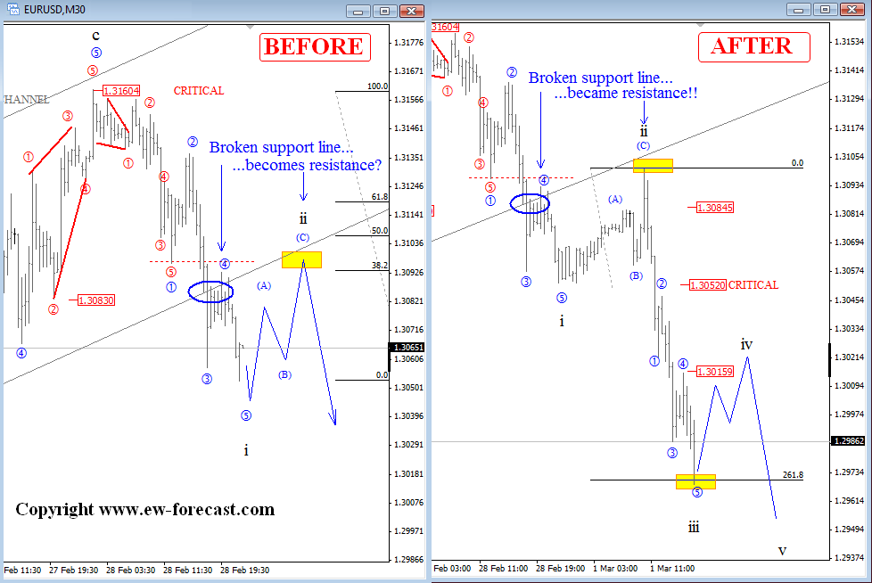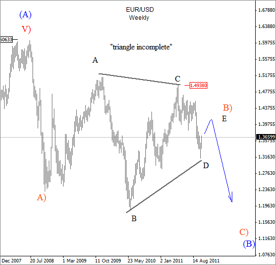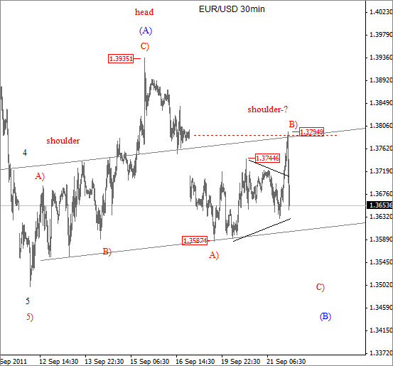 ![]() ![]() Previous Next Sep 01 2011, 03:05EDT Risk Off To Come!? If not today then maybe tomorrow after the NFP!? ![]() Previous Next Sep 02 2011, 07:24EDT, Euro-monitoring two wave Counts ![]() Previous Next Sep 05 2011, 07:23EDT German DAX Update German DAX at new lows. Click here for previous update on DAX ![]() Join us now and get more timely and accurate analysis today! Previous Next Sep 08 2011, Eur/Usd At A"Critical Juncture" ![]() Previous Next Sep 09 2011, Cable At New Lows Expanded flat on cable Chart below was posted for members on Sep 08 2011, when downtrend was expected to continue, after we notied that wave B9 formed a shape of an expanded flat. So far, cable fell to 1.5890. Click here for a basic structure of an expanded flat in a bull market! ![]() Join us and get timely and accurate analysis today! Previous Next Sep 16 2011, 08:05EDT Euro: Back to basics! Euro is forming higher highs and higher lows, and as long this is the case, trend is up. Notice that "swing lows" are still in place, last one at 1.37. Only break of that level will suggest that top is in and that market is headed lower. And why we think that pair is headed lower!? Well, because recovery from the lows is just awful and clearly corrective! ![]() Previous Next Sep 21 2011, Usd/Chf Update Usd/Chf is trading very close to 0.9 psychological level, that we mentioned in one of our past article, published here. Current development suggest that pair still may reach levels around 0.91, 261.8% Fiboancci exntesion target. ![]() Join us now and get more timely and accurate analysis today! Previous Next Sep 21 2011; Eur/Usd Eur/usd reversed nicely lower today from 1.3790 gap area, after the FOMC Statement. Here is a chart that was shared with our subsrber, hours before the FOMC statemment, with an importnat note: