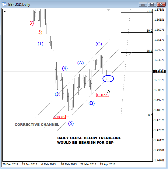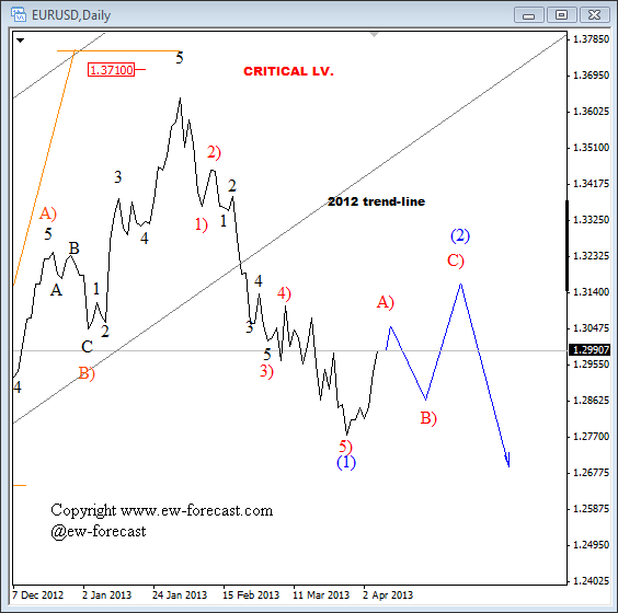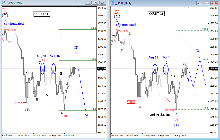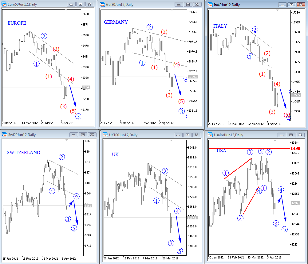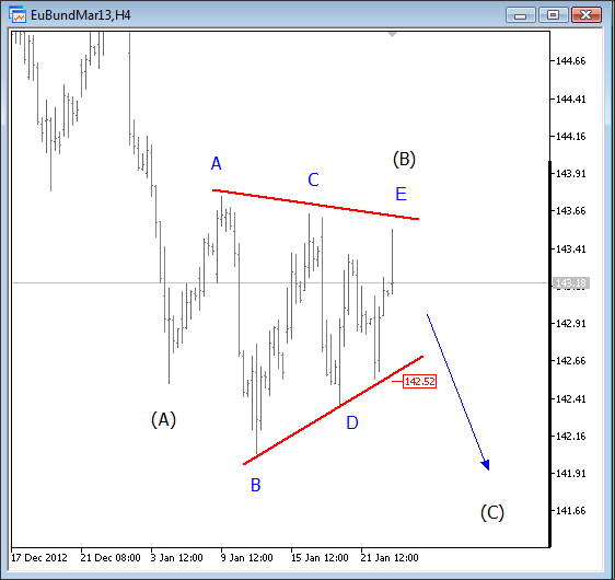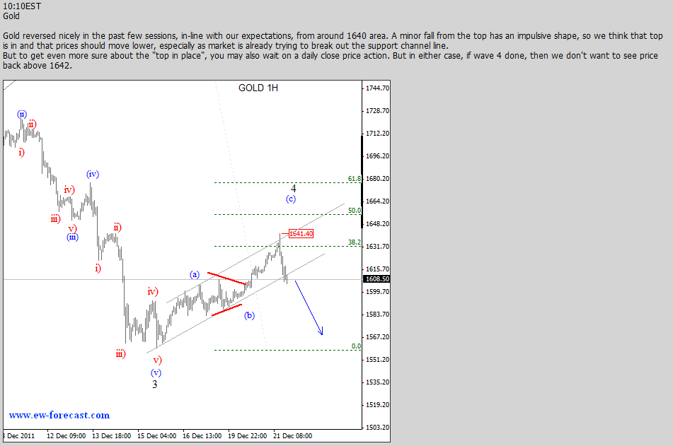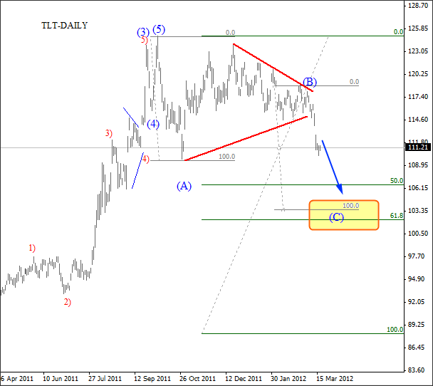 Join us and get timely and accurate analysis today! ![]() Previous Next Sep 21 2011; Gold and S&P Correlation Gold and stocks are trading in tandem! ![]() Previous Next Oct 04 2011; SP Fut vs. Euro ![]() Previous Next Oct 07 2011, S&P Futures At Resistance ![]() Previous Next Oct 11 2011, Eur/Usd (Weekly) Running triangle Pair is showing some evidence of a support around 1.3140 region, but only temporary as we believe that pair is moving higher into a final stages of a running triangle. ![]() Previous Next Oct 17 2011; Euro: Impulsive Advance Wave five in progress, watch out for reversals in this week. Resistance at 1.393-1.4. ![]() Previous Next Oct 18 2011; Gold Headed Lower Gold is falling sharply today, and based on the wave structure, prices are headed towards the levels from September. The reason is price action from previous lows; clearly corrective, identified by a slow, choppy and overlapping price action. ![]() Previous Next Oct 19 2011; SP500 Wave Counts S&P500 facing resistance at 1220/30 from Aug 31 and Sep 16. Join us now and get more timely and accurate analysis today! ![]() Previous Next Oct 22 2011; TLT-iShares Barclays 20+ Year Treasury Bond Fund TLT trades lower since prices completed a five wave, impulsive advance from the lows. As such, current bearish reversal is considered as a corrective; three wave (A)-(B)-(C) pattern that will try to find the support in 107-111 region! *When stocks are up, yields are up, TLT is down and dollar is down;and vice-versa! *iShares Barclays 20+ Year Treasury Bond Fund (the Fund) seeks investment results that correspond generally to the price and yield performance of the Barclays Capital U.S. 20+ Year Treasury Bond Index (the Index). The Index measures the performance of public obligations of the United States Treasury that have a remaining maturity of 20 or more years. ![]() Join us now and get more timely and accurate analysis today! Previous Next Nov 01 2011; TLT-iShares Barclays 20+ Year Treasury Bond Fund; Updated Count Gap filled after (A)-(B)-(C) move lower. Further gains now expected! ![]() Previous Next Nov 02 2011; DAX Ready For A Fall!? -Corrective personality from the lows -Prices reversed from around 61.8%. -Decline from above 6400 appears impulsive -Break off 5740 swing low and through corrective channel will provide new larger bearish leg for the market. ![]() Previous Next Nov 15 2011; 10year U.S. Notes 10year US notes futures (expires 21 of Dec 2011) is showing a bullish technical set-up, through 131 resistance, which is positive for the US dollar. ![]() Previous Next Nov 17 2011; Italy's problems Italy has carried a heavy debt for many years. So why is it stumbling now? Marketplace senior editor Paddy Hirsch explains in the video below! The root of Italy's problems from Marketplace on Vimeo. Previous Next Nov 18 2011; S&P500 Intra-day Bearish bias while below 1243! If you like our analysis, and if you would like to join our services, register here and get our services for just 45€ per month. ![]() Previous Next Nov 23 2011; TLT Updated Count TLT moved nicely higher since our past update , which in fact was the main reason for Dollar Bullish scenario at that time. Click for article here Since then Dollar index bounced nicely higher from 77 to current levels above 79! Join us now and get more timely and accurate analysis today! ![]() *When stocks are up, yields are up, TLT is down and dollar is down;and vice-versa! *iShares Barclays 20+ Year Treasury Bond Fund (the Fund) seeks investment results that correspond generally to the price and yield performance of the Barclays Capital U.S. 20+ Year Treasury Bond Index (the Index). The Index measures the performance of public obligations of the United States Treasury that have a remaining maturity of 20 or more years. Previous Next Nov 30 2011; Gold; Bearish Set-up "If we get an impulsive fall into 1690 area, then you know where gold prices will go" If you like our analysis, and if you would like to join our services, register here and get our services for just 45€ per month. Previous Next Dec 06 2011; More upside for Eur/Chf ![]() If you like our analysis, and if you would like to join our services, register here and get our services for just 45€ per month. Previous Next Dec 12 2011; S&P Futures intra-day Prices eyeing levels around 1210/15. Meanwhile dollar should strengthen. ![]() If you like our analysis, and if you would like to join our services, register here and get our services for just 45€ per month. Previous Next Dec 15 2011; Aud/Usd Similarity Two very equal patterns on the 4h chart bellow! Can Aud/Usd breaks higher!? If you like our analysis, and if you would like to join our services, register here and get our services for just 45€ per month. ![]() Previous Next Dec 21 2011; Gbp/Usd Intra-day Nice run higher on cable, which is now approaching some Fibonacci resistance levels for wave (3). If you like our analysis, and if you would like to join our services, register here and get our services for just 45€ per month. ![]() Previous Dec 29 2011; Gold Intra-day Nice fall on gold, but there is still room for further weakness, towards 1530-September lows. Click here for our past update. ![]() Previous Next Dec 21 2011; Oil-From Intra-day Updates Below is example of oil chart that was shared with our subscribers today, posted at 04:35EST