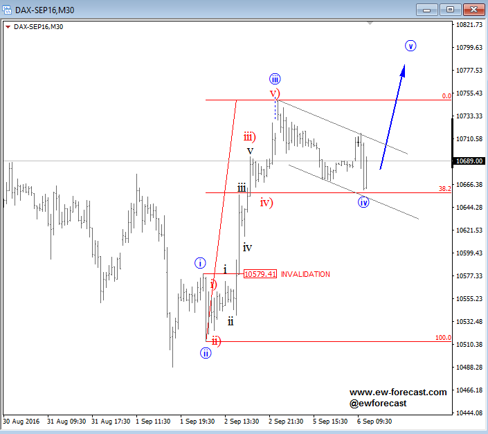 Previous Next Aug 01 2016; EURGBP At Resistance Former wave four, 61.8% Fibonacci level and ending diagonal in wave C suggest that current recovery may face limited upside soon. ![]() Previous Next Aug 09 2016; E-mini S&P500 Bullish intraday structure on E-mini S&P500 suggests that we can see more upside in the very near-term while price trades above 2164. ![]() Previous Next Aug 15 2016; DAX In Wave 5