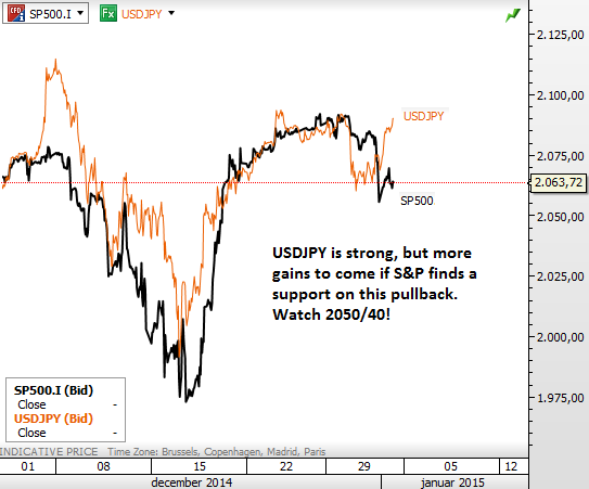 We shared strategy for long USDJPY when price was at 108 and still holding. Same with gold on bearish side from 1233 ![]() Previous Next Nov 17 2014; Copper Weekly View I got a couple of emails regarding my long-term view on copper, after I shared long-term view on Silver on Friday (Click here for Video Analysis on Silver). Well, copper is bearish, but price action to the downside is not so aggressive, actually momentum is decreasing so I would not be surprised if market turns bullish in 2015. Previous Next Dec 01 2014; E-mini S&P500 "Fve waves from the highs/lows are always interesting; it tells you that trend can be changing, even if just temporary." Grega ![]() Previous Next Jan 02 2015; USDJPY vs S&P500 ![]() A Special Holiday Offer on Yearly Membership with 31% OFF!!